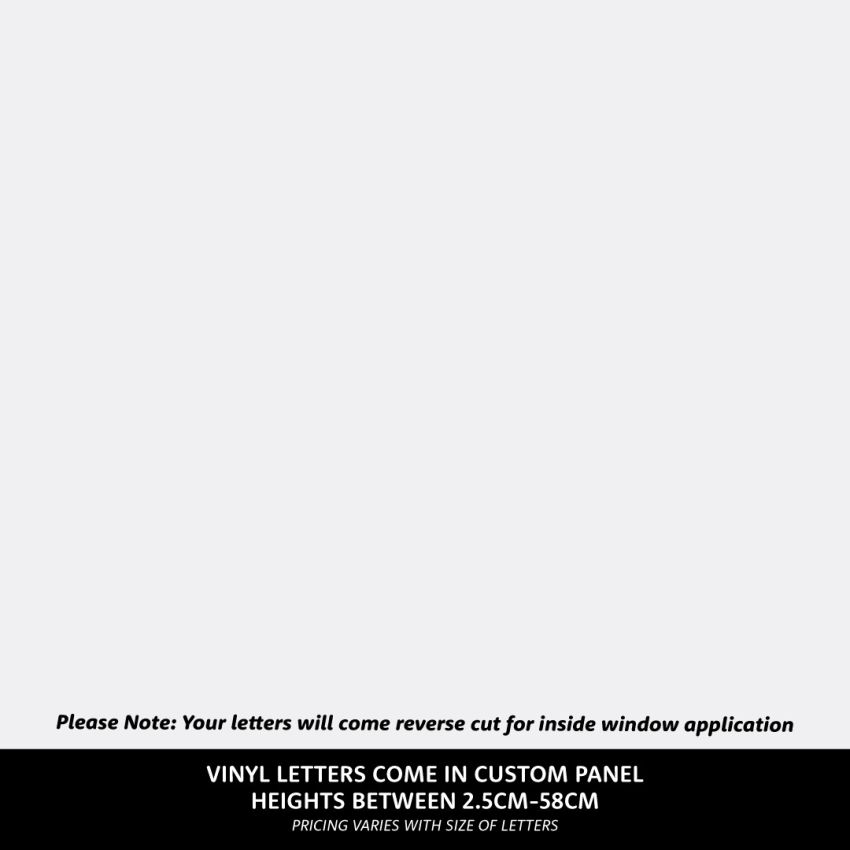 All vinyl lettering is reverse cut, made specifically to be applied on the inside of your window, so your message is seen clearly and correctly from the outside.